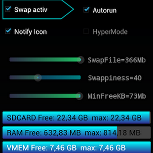Extends every Android device up to 4 GB of memory in which it creates a swap file on the SDCARD.